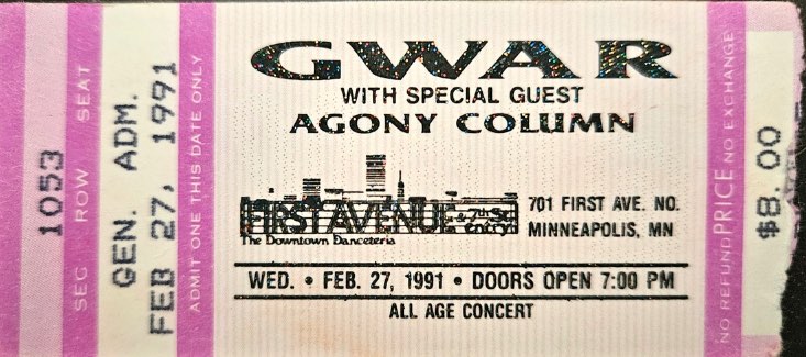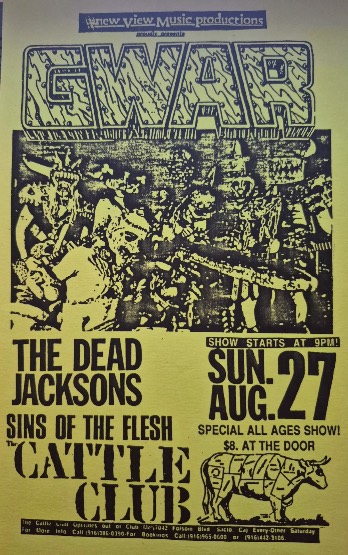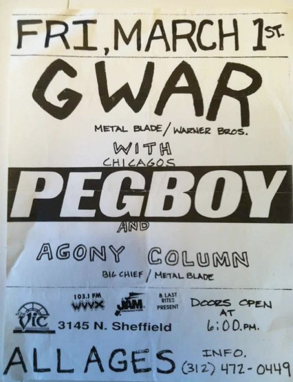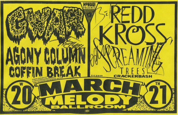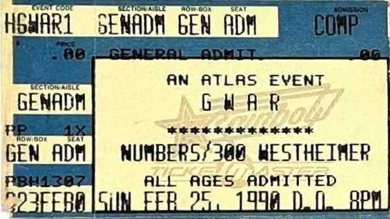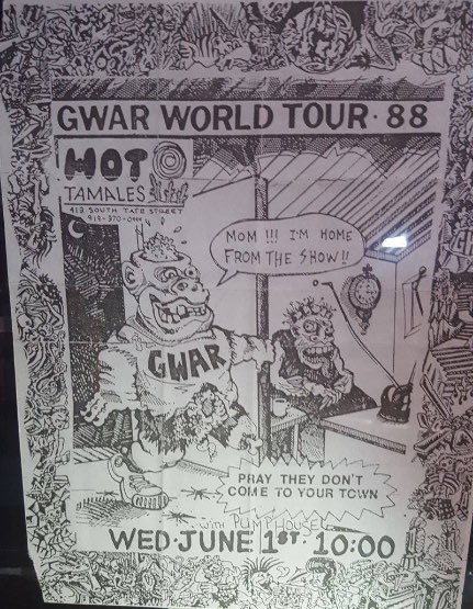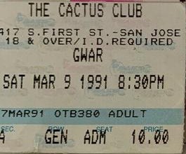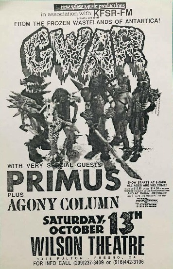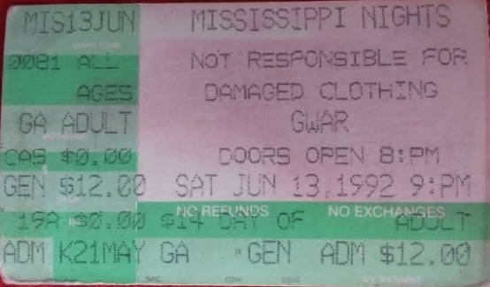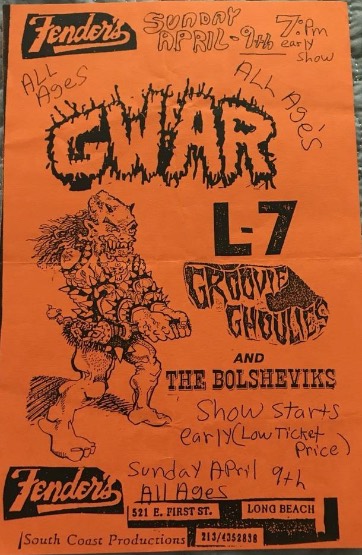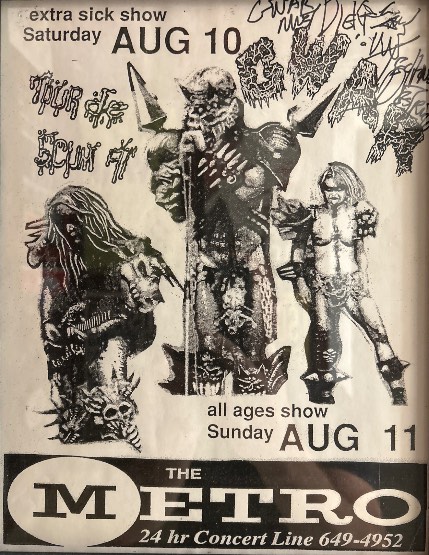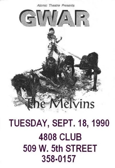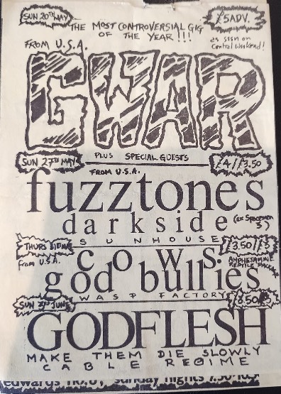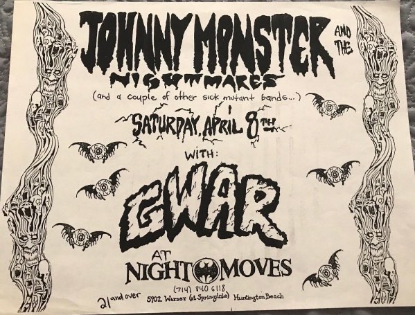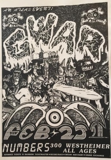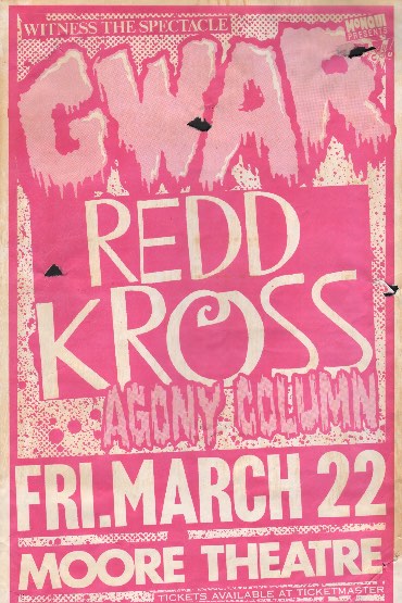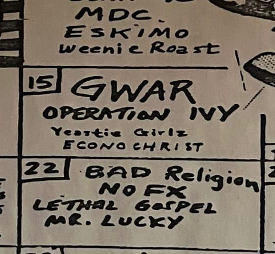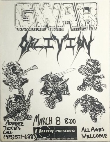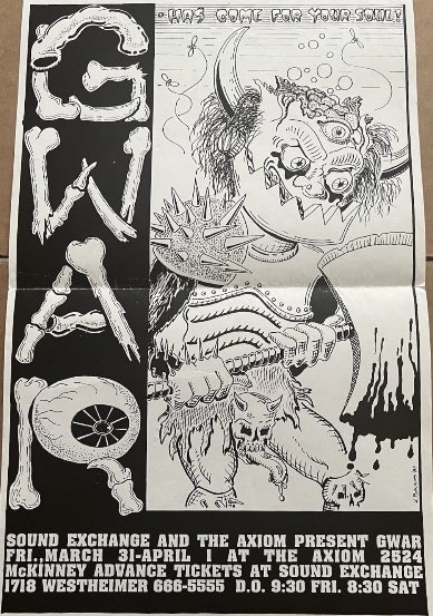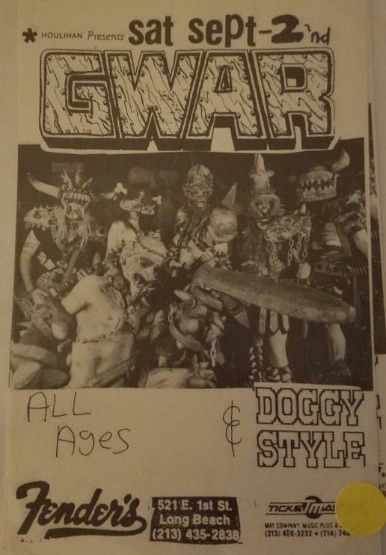 - 11/10/1985; Concert at P.B. Kellys, Richmond, VA, USA. opening for Death Piggy. (as 'Gwar' by now).