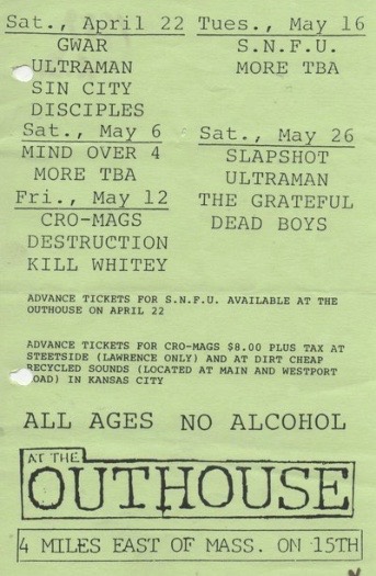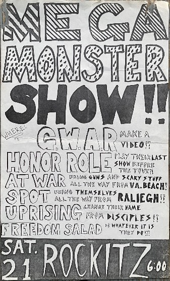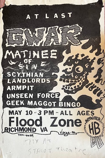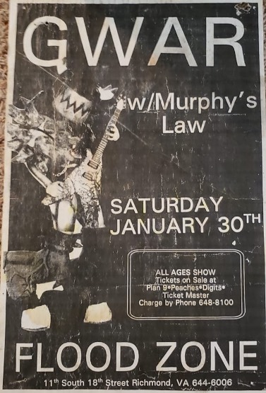 - 10/05/1986; Concert at The Flood Zone, Richmond, VA, USA. with Scythian Landlords, Armpit & asst.