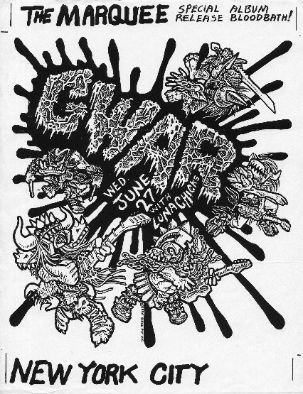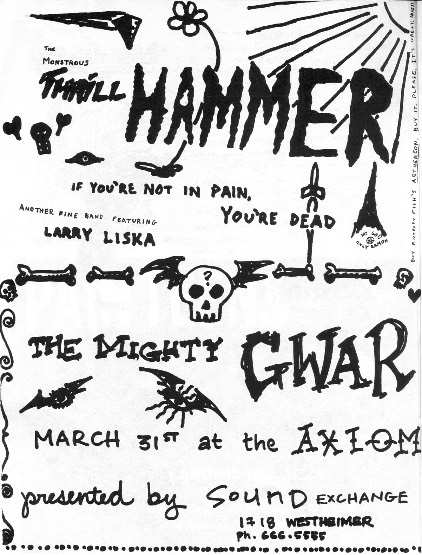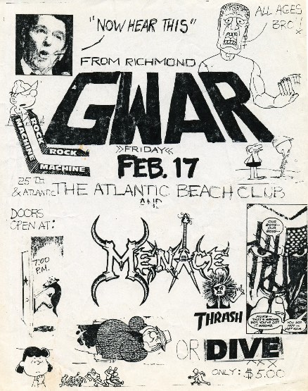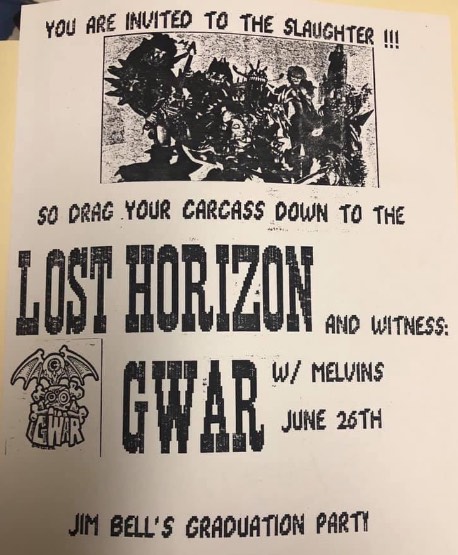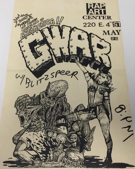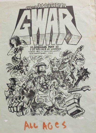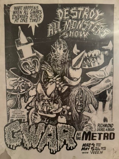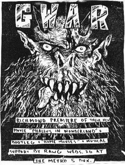 - ??/??/1985; GWAR form in Richmond, VA in early '85; Ben (v), Dave (g), Chris (b), Russ (g), Steve (g), & Sean (d).