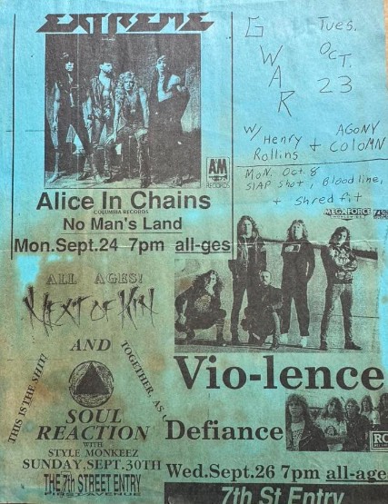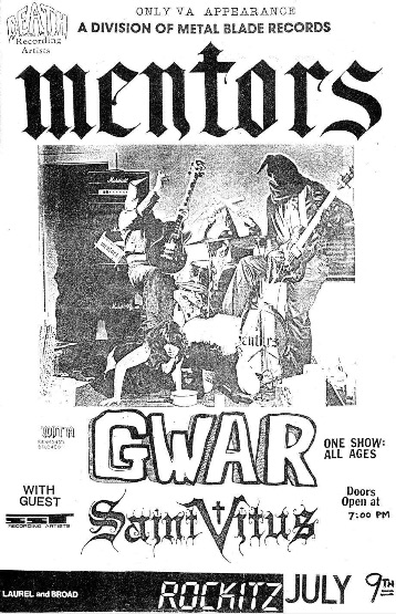 - 09/07/1987; Concert at Rockitz, Richmond, VA, USA. opening for Mentors, with Saint Vitus.