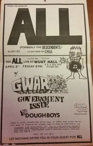 - 08/04/1988; Concert at WUST Hall, Washington, DC, USA. opening for ALL, with G.I. & Doughboys.