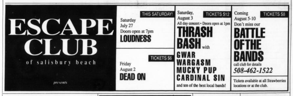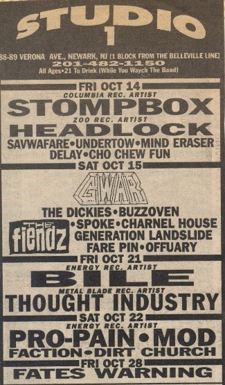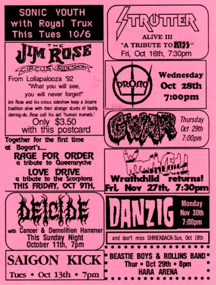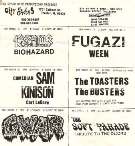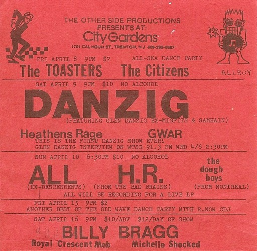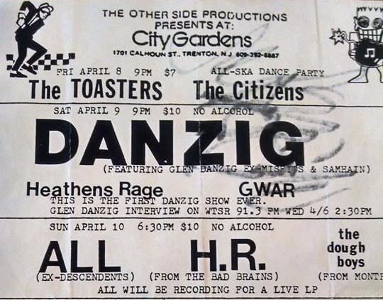 - 09/04/1988; Concert at City Gardens, Trenton, NJ, USA. opening for Danzig, with Heathen's Rage.