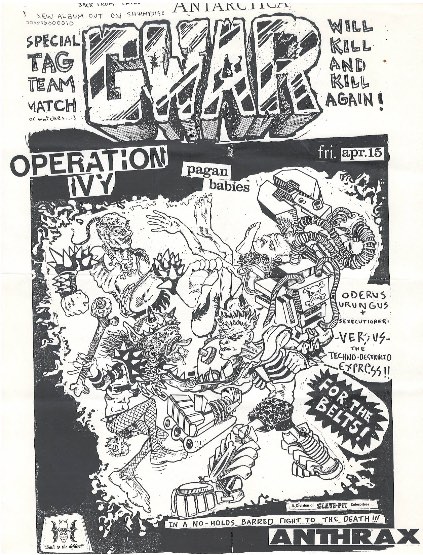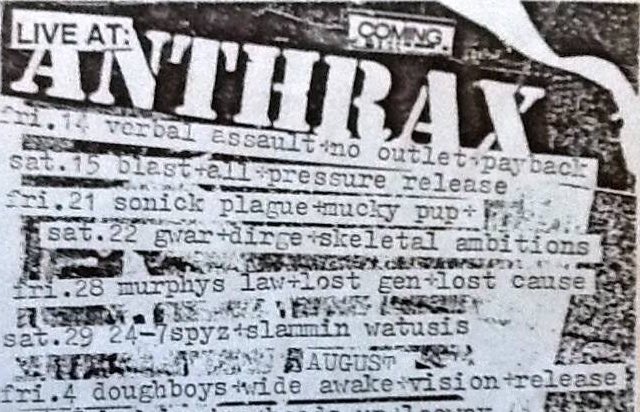 - 15/04/1988; Concert at The Anthrax, Norwalk, CT, USA. with Operation Ivy & Pagan Babies.