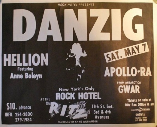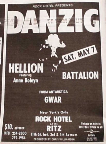 - 07/05/1988; Concert at The Ritz, New York, NY, USA. opening for Danzig, with Hellion.