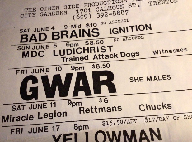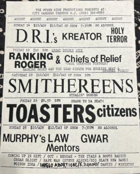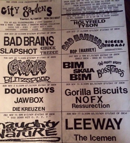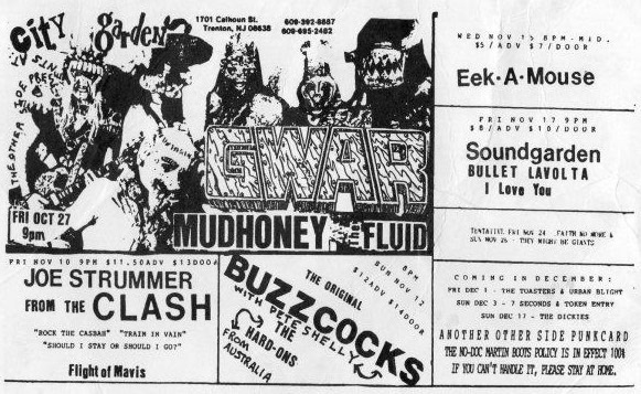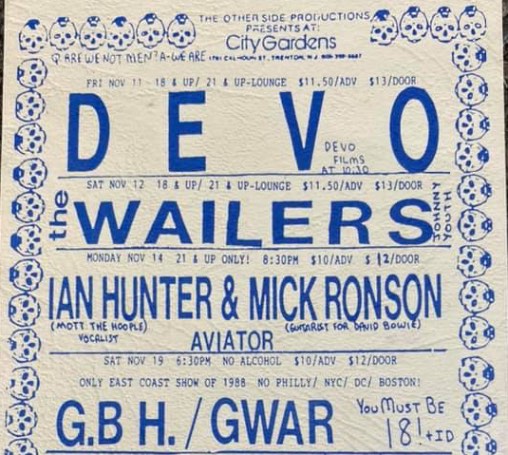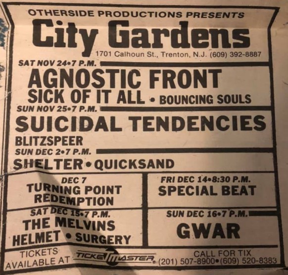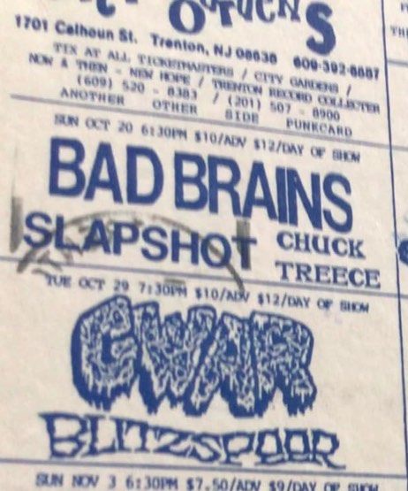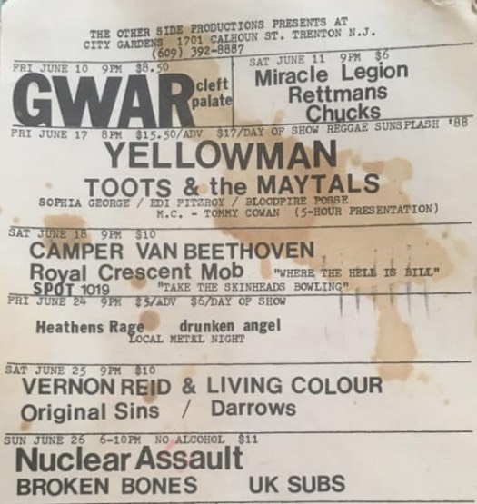 - 19/11/1988; Concert at City Gardens, Trenton, NJ, USA. opening for G.B.H.