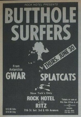 - 30/06/1988; Concert at The Ritz, New York, NY, USA. opening for Butthole Surfers, with Splatcats.