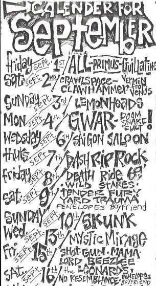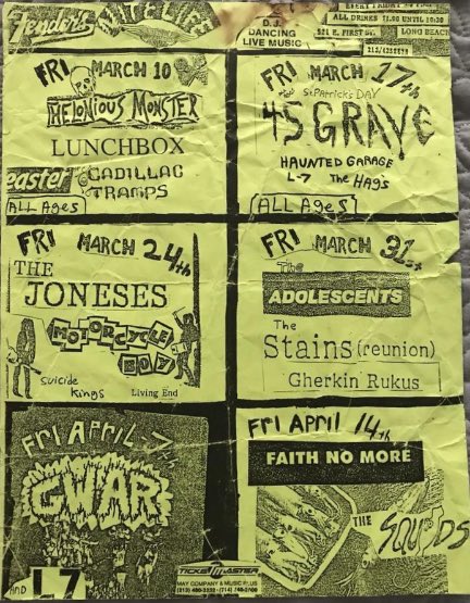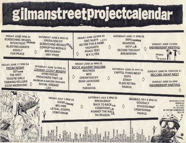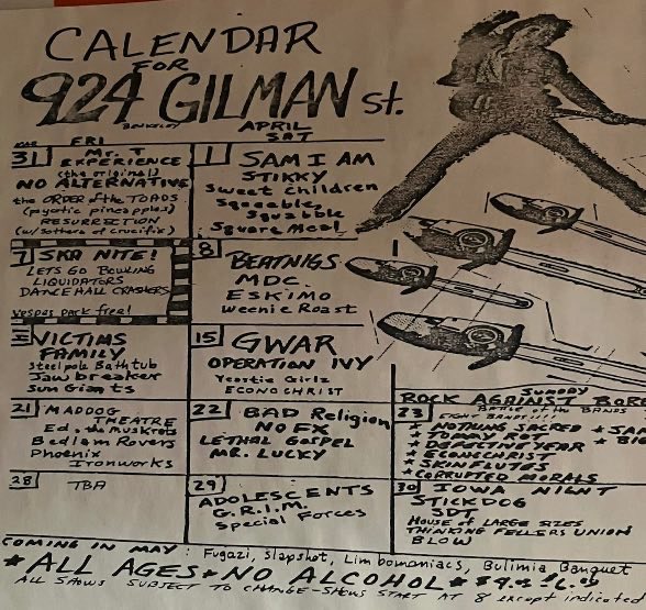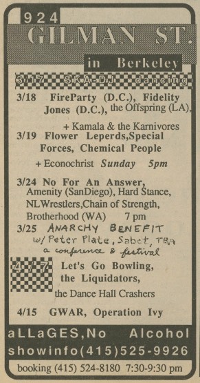 01/07/1988; Concert at 924 Gilman St., Berkeley, CA USA. with Melvins & asst. (didn't play).