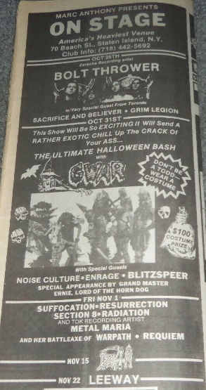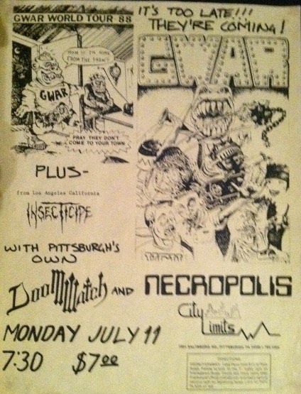 - 11/07/1988; Concert at City Limits, Pittsburgh, PA, USA. with Doom Watch, Necropolis & Insecticide.