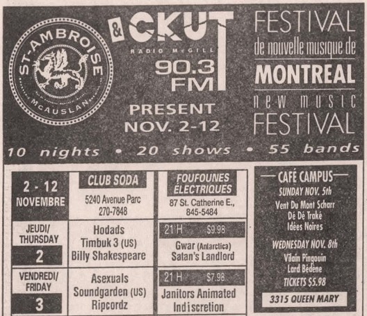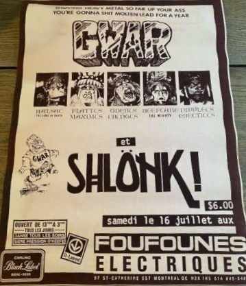 - 16/07/1988; Concert at Foufounes Electrique, Montreal, QC, Canada. with Shlonk!.