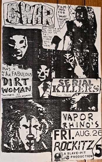 - 26/08/1988; Concert at Rockitz, Richmond, VA, USA. with Dirt Woman, Serial Killers & Vapor Rhino's.