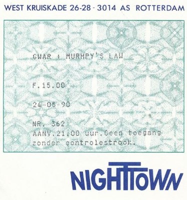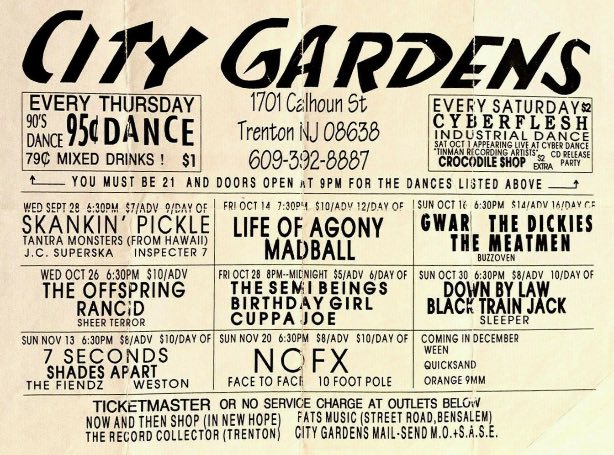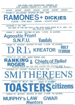 - 28/08/1988; Concert at City Gardens, Trenton, NJ, USA. opening for Murphy's Law, with Mentors.