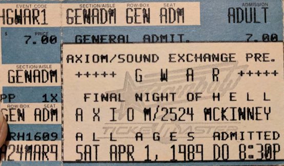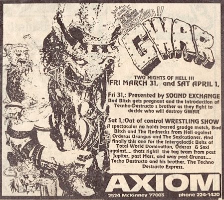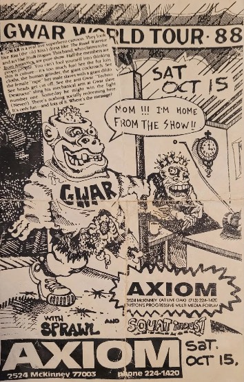 - 15/10/1988; Concert at The Axiom, Houston, TX, USA. with Sprawl & Squat Thrust.