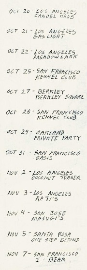 - 31/10/1988; Concert at The Palace Theatre, Petaluma, CA, USA. (cancelled?).