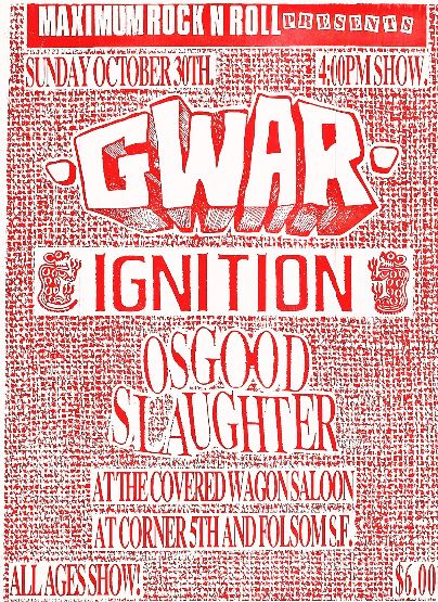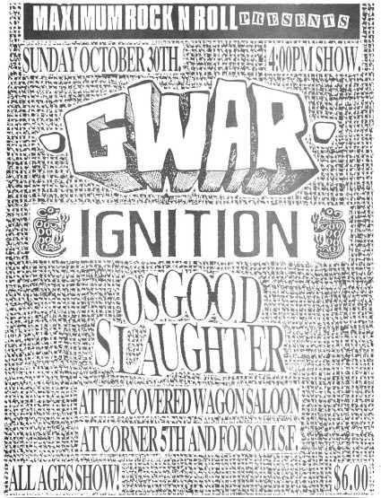 - 30/10/1988; Concert at The Covered Wagon, San Francisco, CA, USA. with Ignition & Osgood Slaughter.