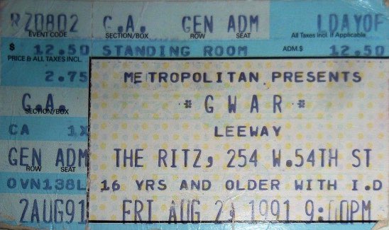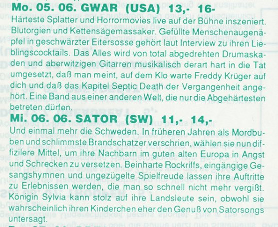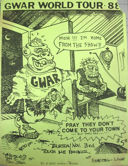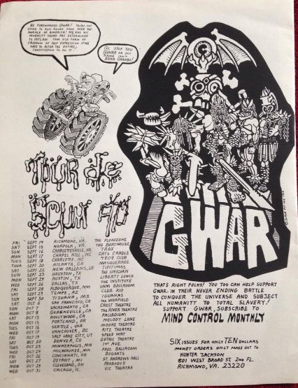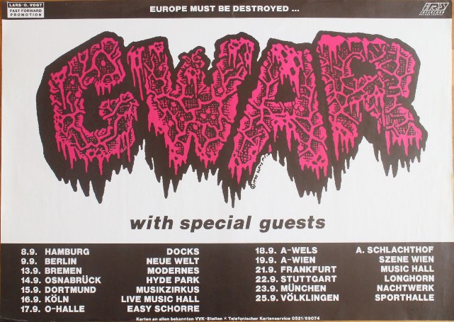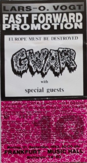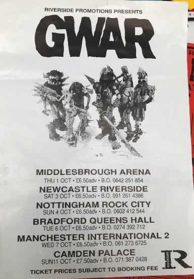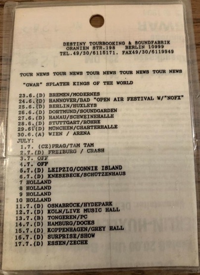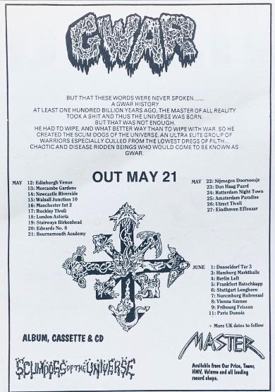 - ??/01/1996; GWAR tour Europe Jan. - Mar. followed by a U.S. tour in May and then Oct., dates to follow.