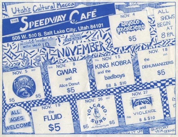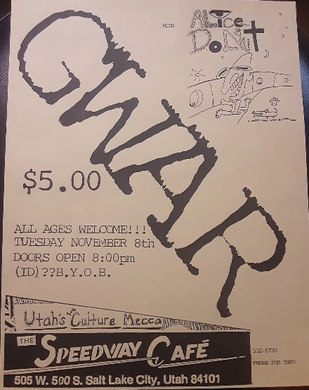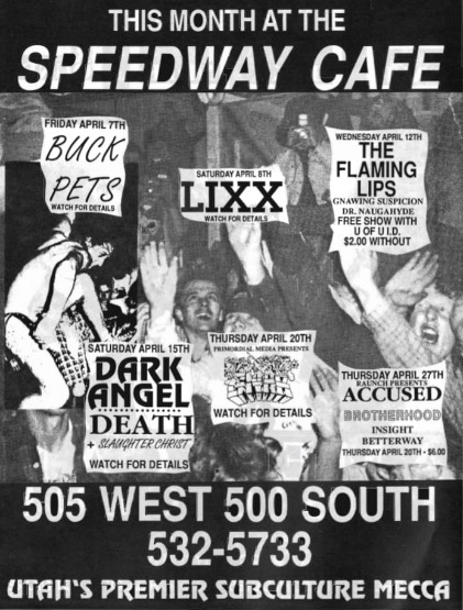 - 08/11/1988; Concert at The Speedway Cafe, Salt Lake City, UT, USA. with Alice Donut.