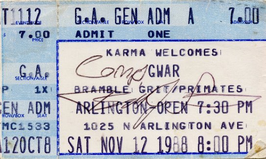 - 12/11/1988; Concert at The Arlington Theatre, Indianapolis, IN, USA. with The Primates & Bramble Grit.
