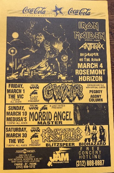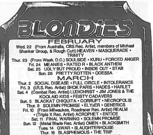 - 21/02/1987; Concert at Rockitz, Richmond, VA, USA. with Honor Role, At War & asst.