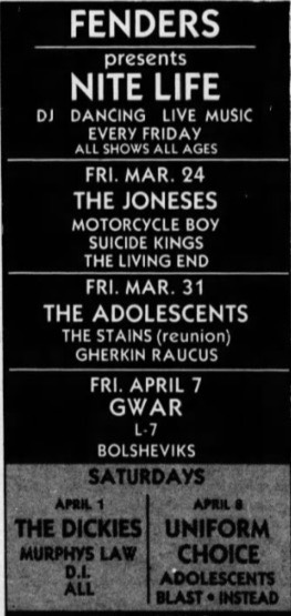 - 03/07/1987; Concert at Rockitz, Richmond, VA, USA. with Alter Natives & Fun Junkies.