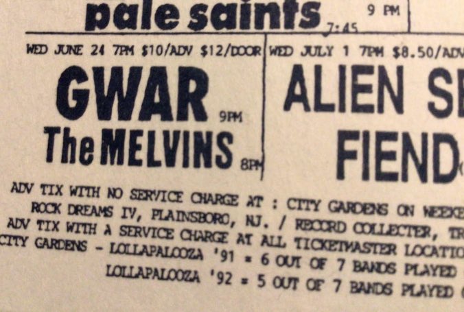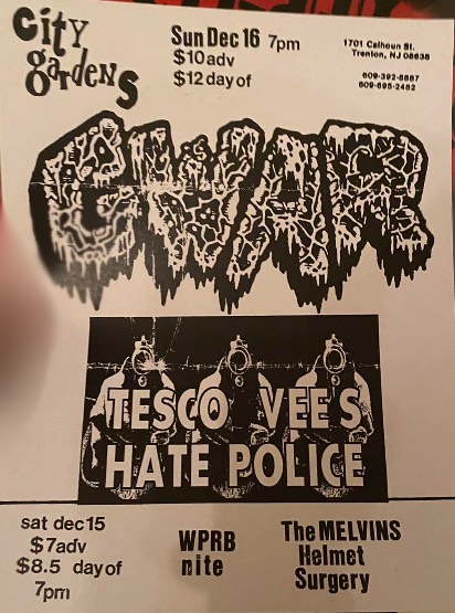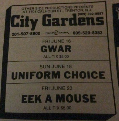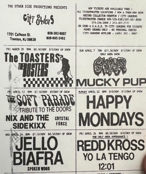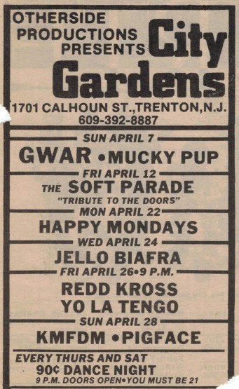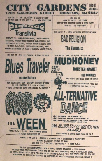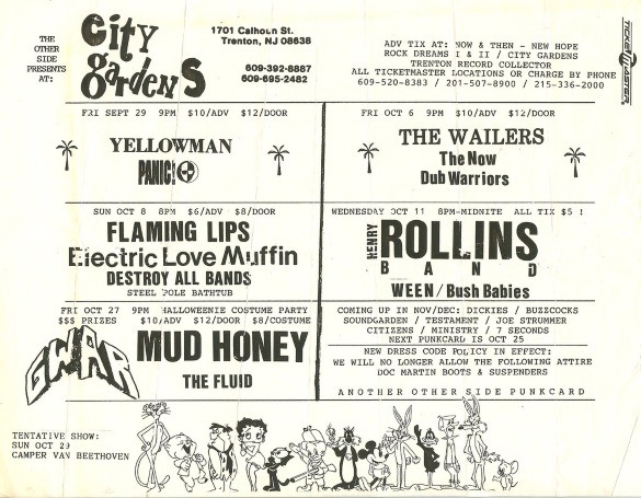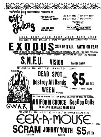 - 10/06/1988; Concert at City Gardens, Trenton, NJ, USA. with She Males/Cleft Palate.