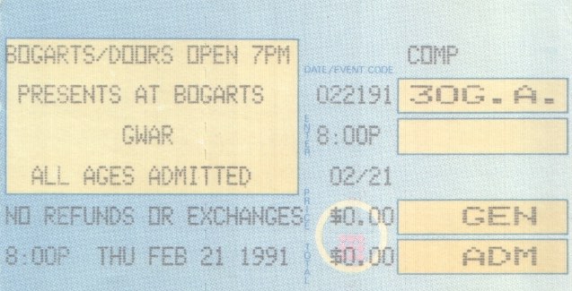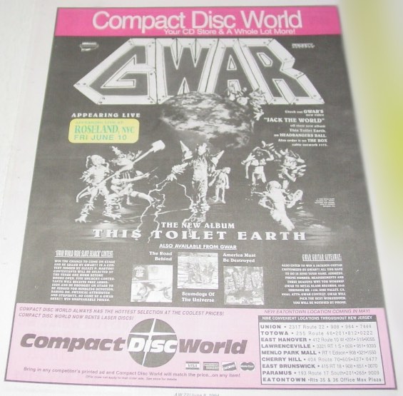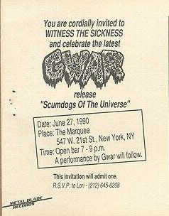 - ??/10/1995; 'The World According To GWAR' interview tape released.