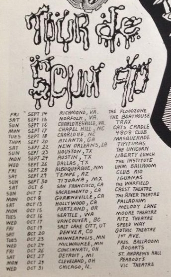 - 30/11/1994; Concert at The Cat's Cradle, Carrboro, NC, USA. with The Dickies & Buzzoven. (Dickies dropped from tour?).
