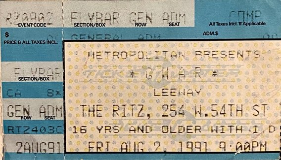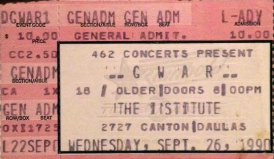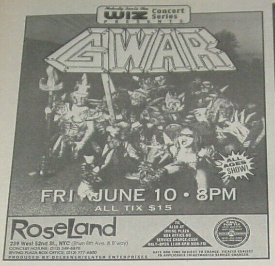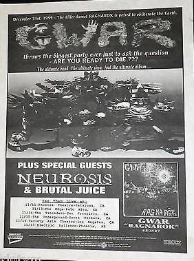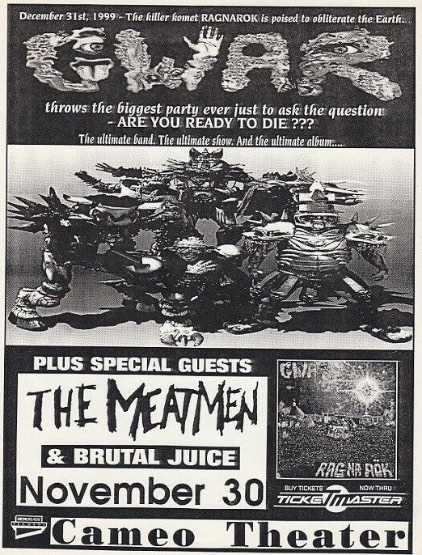 - ??/04/1999; GWAR tour U.S. in Apr. - Jun. then Jun. - Aug. and again from Oct. - Dec., dates to follow.