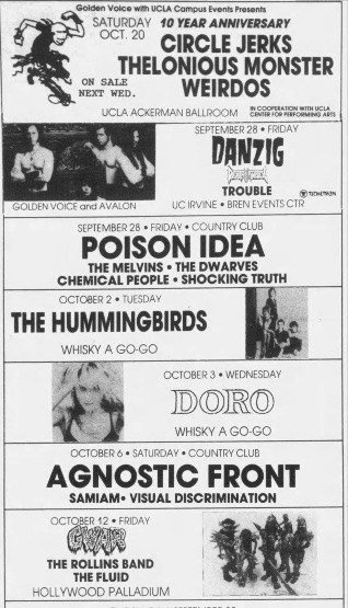 - 20/10/1988; Concert at Animated Jesus, Los Angeles, CA, USA.