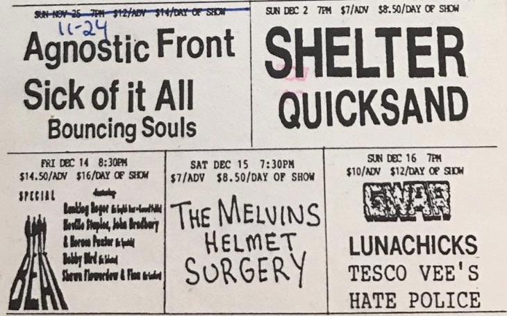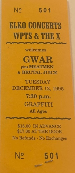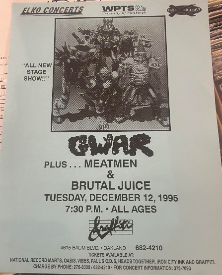 - 12/12/1995; Concert at Graffiti, Pittsburgh, PA, USA. with The Meatmen & Brutal Juice.