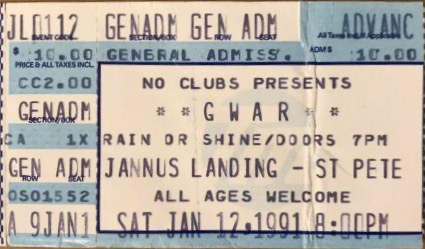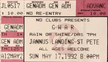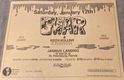 - 03/12/1995; Concert at Jannus Landing, St. Petersburg, FL, USA. with The Meatmen & Brutal Juice.