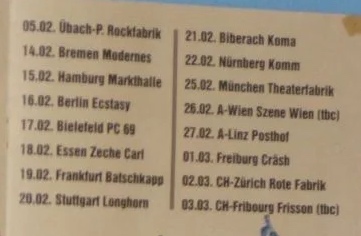 - 30/10/1985; Concert at Rockitz, Richmond, VA, USA. opening for Mudd Helmut.