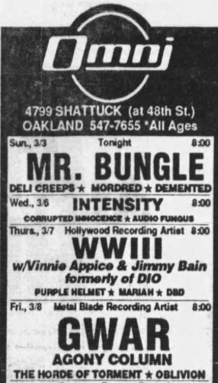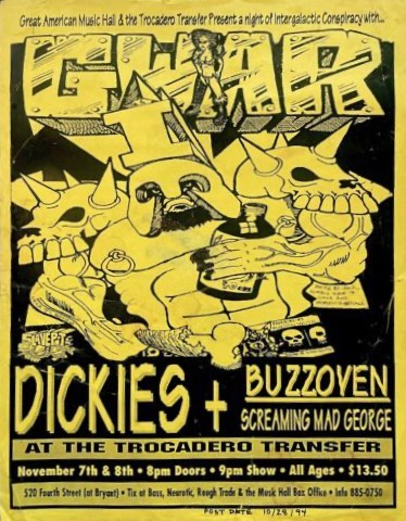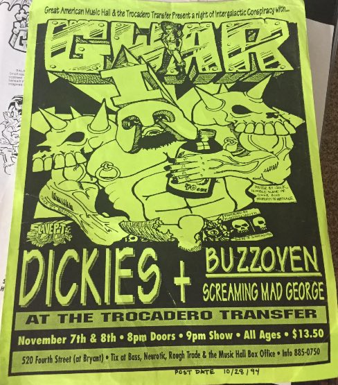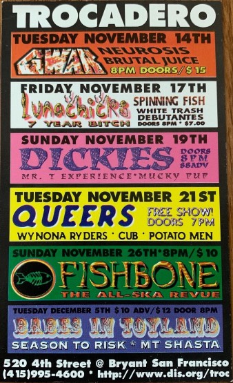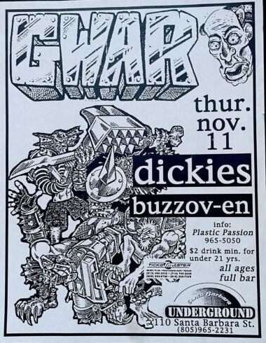 - 12/11/1994; Concert at World Beat Center, San Diego, CA, USA. with The Dickies & Buzzoven.