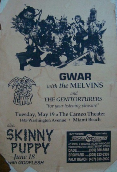 - 30/11/1995; Concert at The Cameo Theatre, Miami Beach, FL, USA. with The Meatmen & Brutal Juice.