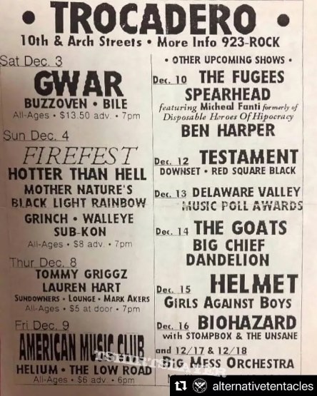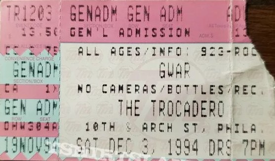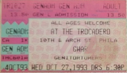 - 03/12/1994; Concert at The Trocadero, Philadelphia, PA, USA. with Buzzoven & Bile.