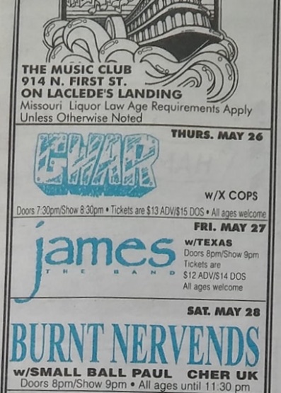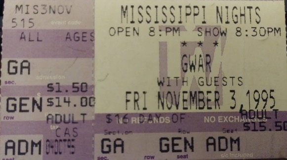 - 03/11/1995; Concert at Mississippi Nights, St. Louis, MO, USA. with Neurosis & Brutal Juice.