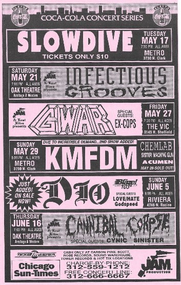 - 12/12/1994; Concert at Eastwood Theatre, Indianapolis, IN, USA. with Buzzoven & Bile.