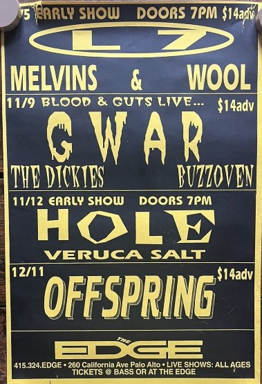 - 13/11/1995; Concert at The Edge Palo Alto, CA, USA. with Neurosis & Brutal Juice.