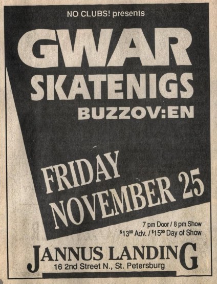- 25/11/1994; Concert at Jannus Landing, St. Petersburg, FL, USA. with Skatenigs & Buzzoven.
