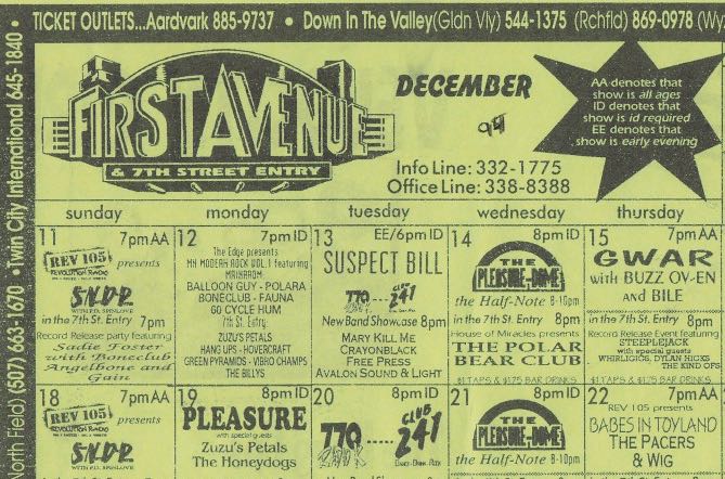- 15/12/1994; Concert at First Avenue, Minneapolis, MN, USA. with Buzzoven & Bile.