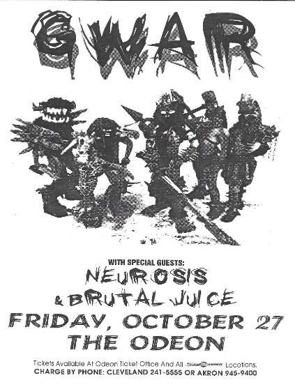 - 27/10/1995; Concert at The Odeon, Cleveland, OH, USA. with Neurosis & Brutal Juice. (Oct. 27th - Dec. 23rd; 'Ragnarok 'N Roll' Tour).