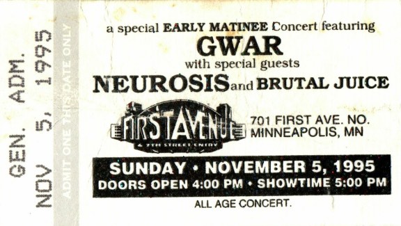 - 05/11/1995; Concert at First Avenue, Minneapolis, MN, USA. with Neurosis & Brutal Juice.