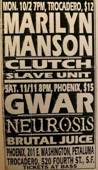- 11/11/1995; Concert at The Phoenix Theatre, Petaluma, CA, USA. with Neurosis & Brutal Juice.