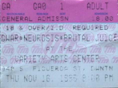 - 16/11/1995; Concert at Variety Arts Center, Los Angeles, CA, USA. with Neurosis & Brutal Juice.