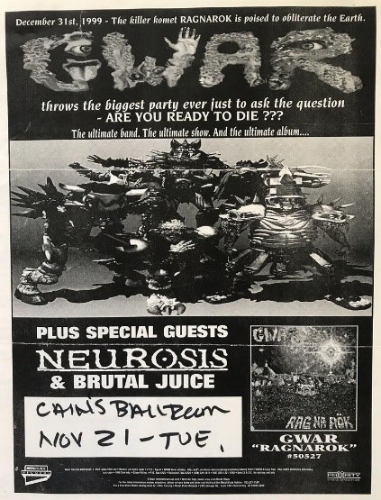 - 14/11/1995; Concert at The Trocadero, San Francisco, CA, USA. with Neurosis & Brutal Juice.