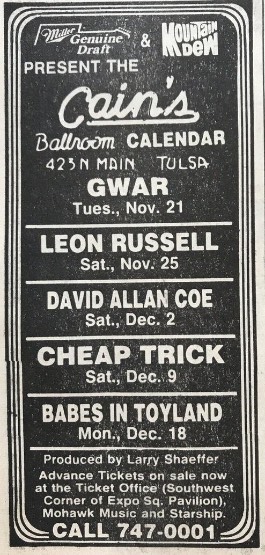 - 21/11/1995; Concert at Cain's Ballroom, Tulsa, OK, USA. with Neurosis & Brutal Juice.