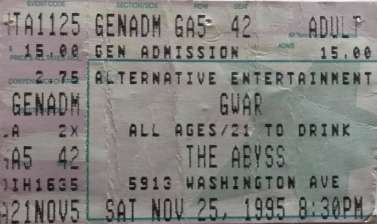 - 25/11/1995; Concert at The Abyss, Houston, TX, USA. with Neurosis & Brutal Juice.
