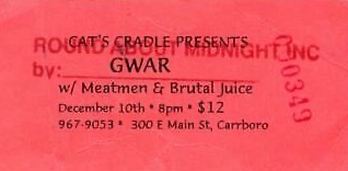 - 10/12/1995; Concert at The Cat's Cradle, Carrboro, NC, USA. with The Meatmen & Brutal Juice.