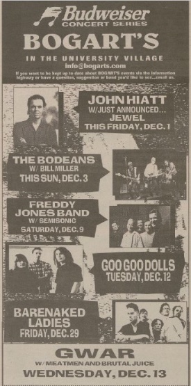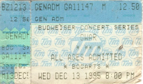 - 13/12/1995; Concert at Bogart's, Cincinnati, OH, USA. with The Meatmen & Brutal Juice.