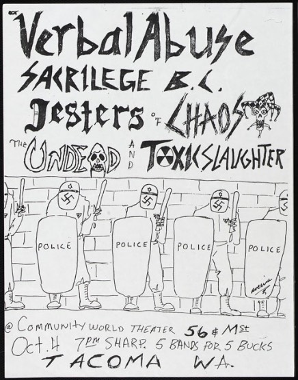 - 04/10/1987; Concert at The Community World Theatre, Tacoma, WA, USA. opening for Verbal Abuse, with The Undead & asst.