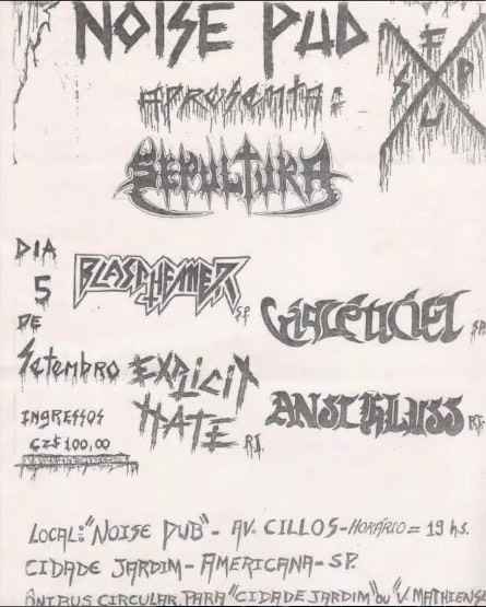 - 05/09/1987; Concert at Noise Pub, Sao Paulo, Brazil. with Blasphemer & asst.